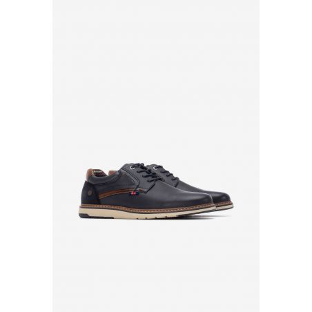 Zapato casual de hombre con cordones, elaborado con exterior de polipiel duradera, forro interior textil suave y suela de goma flexible. Diseñado para ofrecer comodidad y estilo en el día a día, combinando resistencia y versatilidad en cada paso.