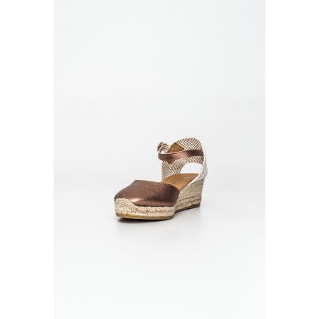 SANDALIA PIEL METALIZADA CUÑA YUTE PASEART