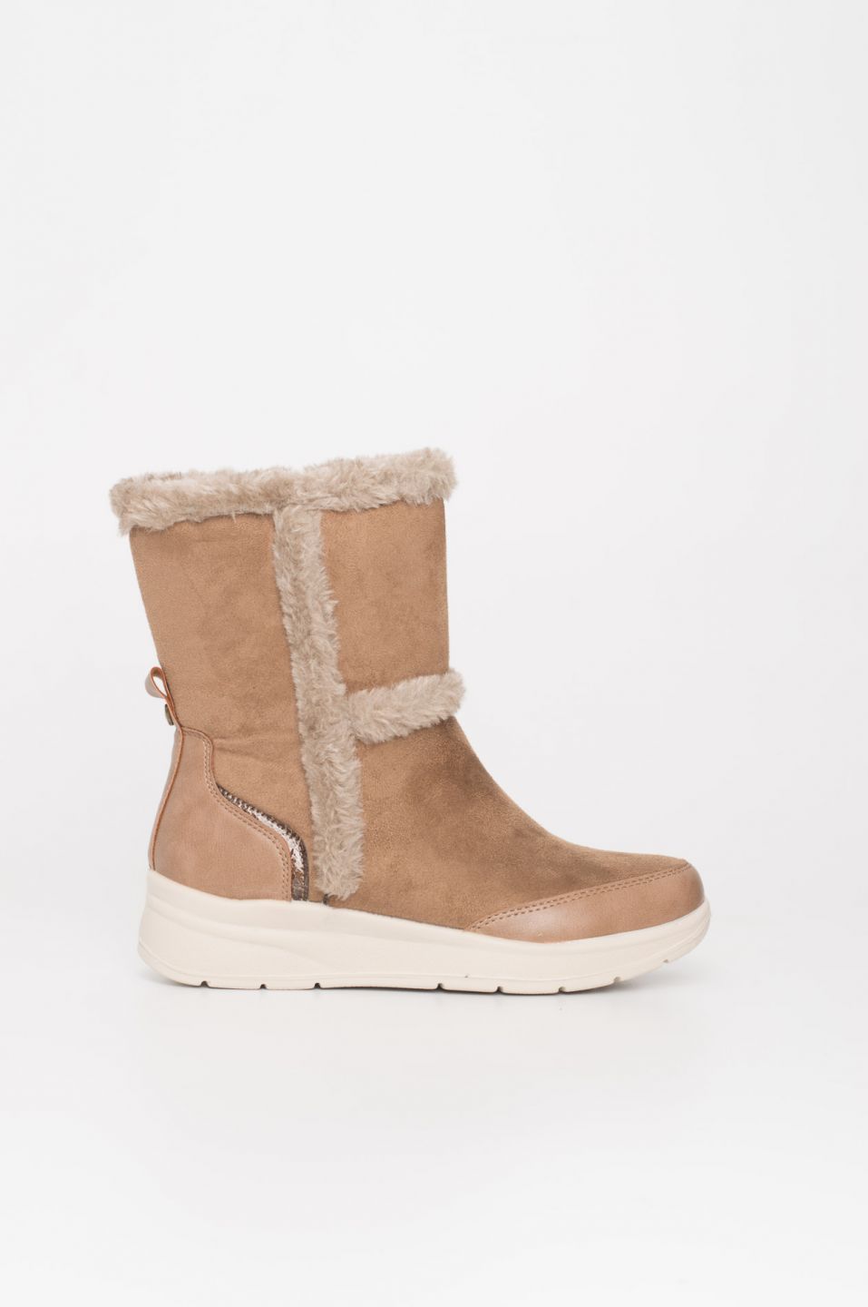 Su forro interior de pelo suave mantiene tus pies abrigados incluso en los días más fríos, mientras que la cuña integrada aporta altura y estiliza la silueta sin perder estabilidad. Los cordones ajustables garantizan un ajuste perfecto y un toque actual, y la suela antideslizante proporciona seguridad en cada paso.