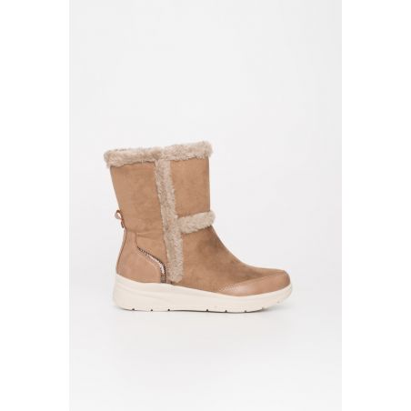 <p>Su <strong>forro interior de pelo suave</strong> mantiene tus pies abrigados incluso en los días más fríos, mientras que la <strong>cuña integrada</strong> aporta altura y estiliza la silueta sin perder estabilidad. Los <strong>cordones ajustables</strong> garantizan un ajuste perfecto y un toque actual, y la <strong>suela antideslizante</strong> proporciona seguridad en cada paso.</p>