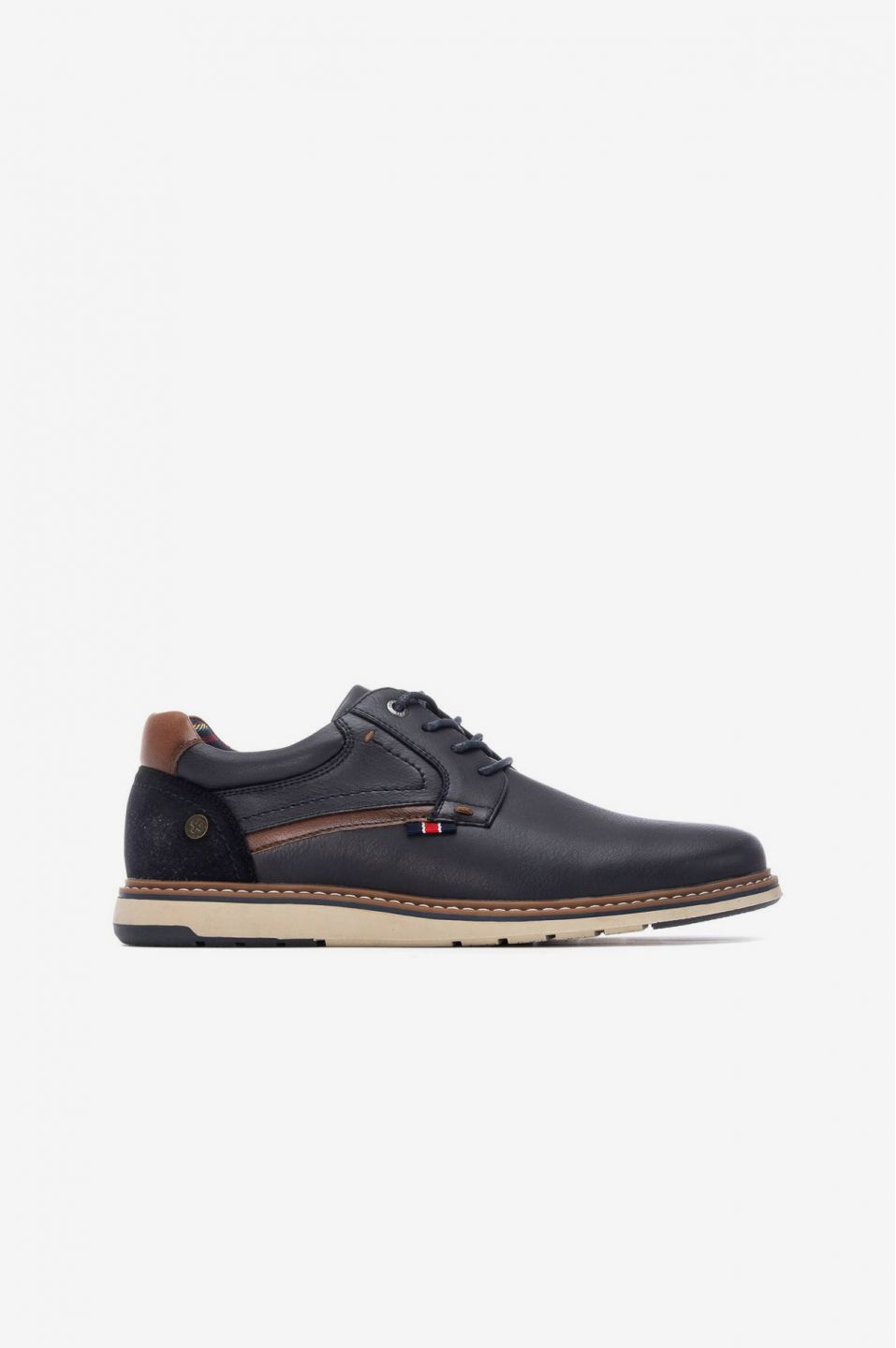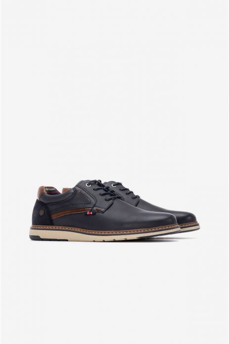 Zapato casual de hombre con cordones, elaborado con exterior de polipiel duradera, forro interior textil suave y suela de goma flexible. Diseñado para ofrecer comodidad y estilo en el día a día, combinando resistencia y versatilidad en cada paso.